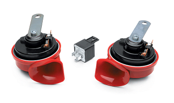 Ford Claxon Twin Tone set € 55,00 Attractive set of Electric Twin Tone Horns. One high toned, the other low toned. Contains relay and mounting bracket. Bekijken